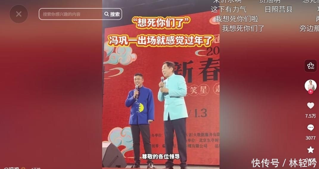 44. 1日,他又上线南京太阳宫剧场《迎新春相声晚会》宣传视频,携手贾旭明、郑健等老友登台演出,开场依旧用那句深入人心的“我想死你们了”,神态从容自如。